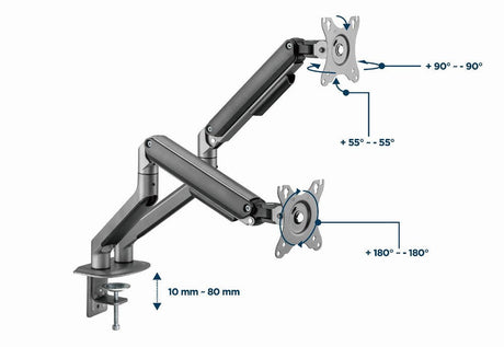 Gembird Desk Mounted Adjustable Double Monitor Arm Space Grey