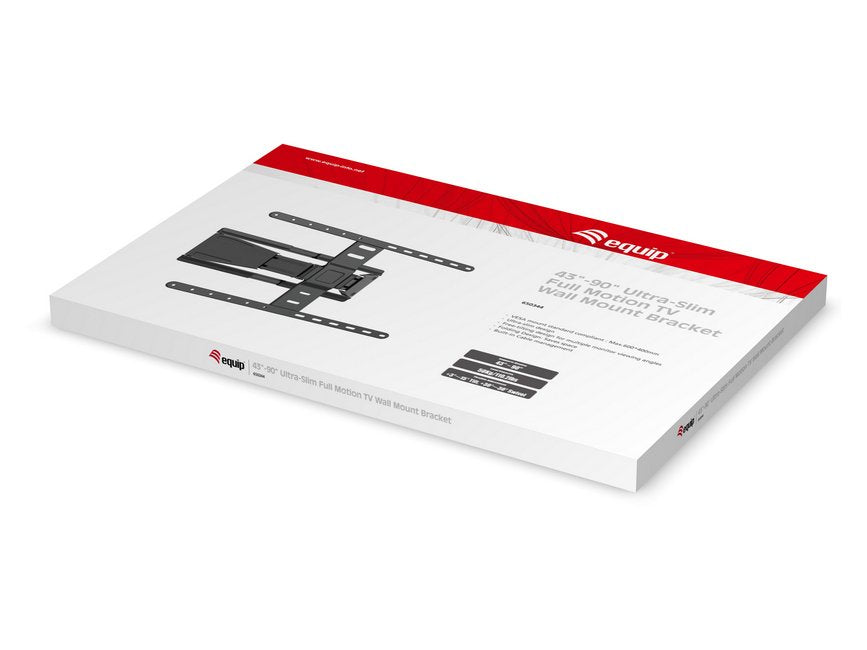 "El soporte de pared para TV Ultra-Slim Full Motion de 43""-90"" Equip 650344 ofrece una solución elegante y versátil para montar televisores grandes de 43 a 90 pulgadas. Fabricado con precisión, este soporte combina durabilidad con un diseño de perfil bajo para complementar los espacios modernos y maximizar la flexibilidad de visualización.