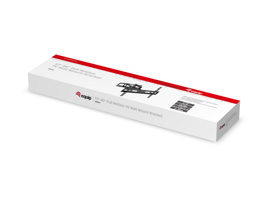 Equip Soporte de TV de movimiento completo de 37"-80. Capacidad máxima de peso: 40 kg, Tamaño mínimo de pantalla: 94 cm (37"), Tamaño máximo de pantalla: 2,03 m (80"), Compatibilidad con interfaz de montaje (min): 100 x 100 mm, Compatibilidad con interfaz de montaje (max): 600 x 400 mm. Ángulo de inclinación: -15 - 3°, Ángulo de giro (alcance): -60 - 60°, Distancia a la pared (min): 6,7 cm, Distancia a la pared (max): 35,5 cm. Color del producto: Negro