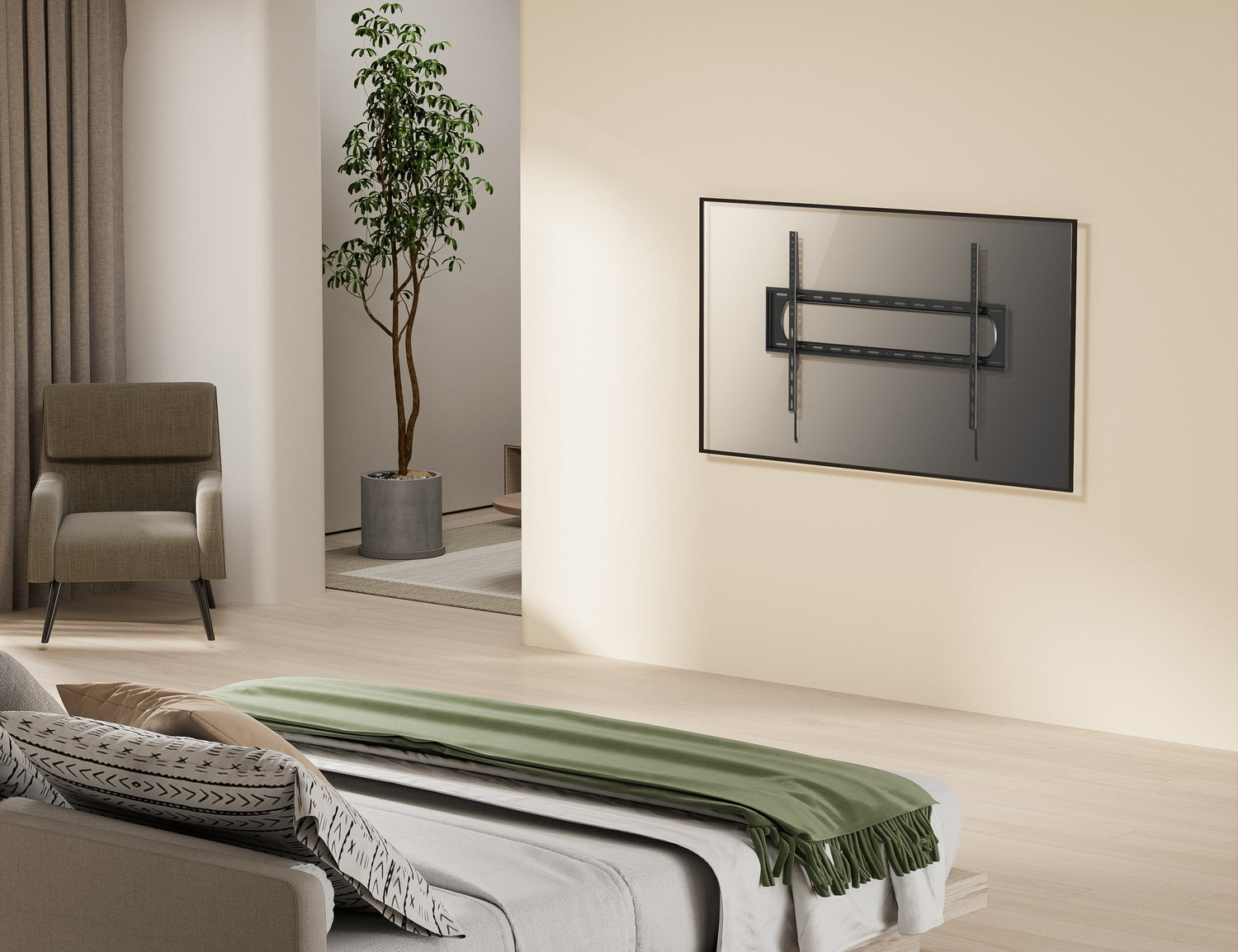 El equip® 650338 It's affordable Heavy-Duty TV Wall Mount es una solución razonable. Una estructura de refuerzo nivela la capacidad de peso hasta 120 kg para sostener firmemente televisores de 60"~120". El amplio espacio en el centro es perfecto para instalar la toma de corriente y ocultar todos los cables desordenados. Un cierre de resorte de liberación rápida permite retirar el televisor de forma rápida y sencilla, y sólo se tarda unos segundos en instalarlo.