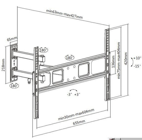 Soporte Pantalla Equip 37 70" Doble Brazo Inclinable 20 +10 Giratorio 180 Vesa Max. 600x400 Max 50kg