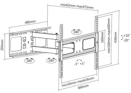 Soporte Pantalla 37- 80 Doble Brazo Full Motion Equip Max. 40kgs Vesa Max 600x400