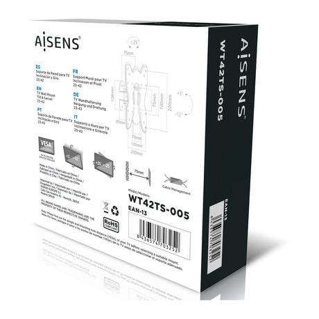 Aisens Soporte Eco Giratorio, Inclinable Y Nivelable Para Monitor/Tv 20kg (1 Pivote) De 13-42, Negro