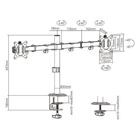 Gembird Ma-D2-01 Soporte Para 2 Monitores 17"-32" Negro Escritorio