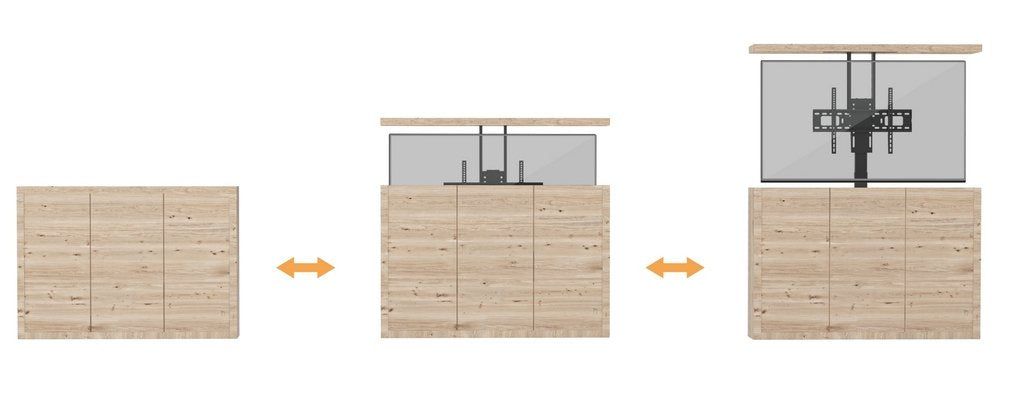 - Diseño elevable: crea recintos o armarios únicos para ocultar los televisores