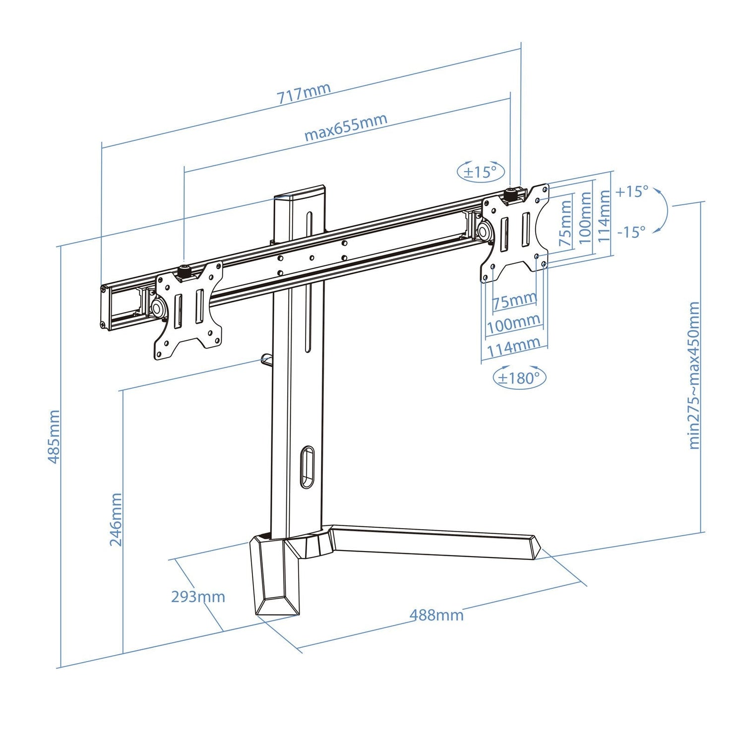 TooQ DB1402TN-B. Montaje: Independiente, Capacidad máxima de peso: 7 kg, Tamaño mínimo de pantalla: 43,2 cm (17"), Tamaño máximo de pantalla: 68,6 cm (27"), Compatibilidad con interfaz de montaje (min): 75 x 75 mm, Compatibilidad con interfaz de montaje (max): 100 x 100 mm. Ajustes de altura, Ángulo de inclinación: -15 - 15°. Color del producto: Negro, Rojo
