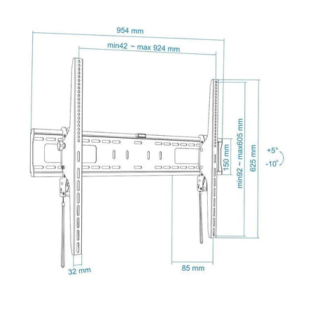 Tooq Soporte Fijo De Pared Para Tv De 60"-100" - Inclinable - Peso Max 75kg - Vesa 900x600mm - Negro