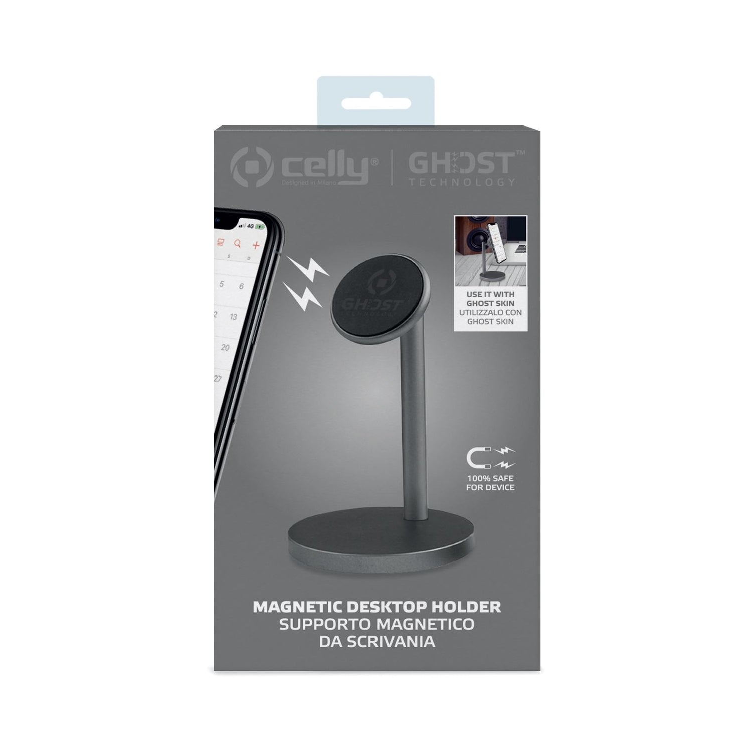 Celly Ghost Desk. Tipo de dispositivo móvil: Reproductor de MP3, Teléfono móvil/smartphone, Tipo: Soporte pasivo, Uso adecuado: Escritorio, Color del producto: Negro