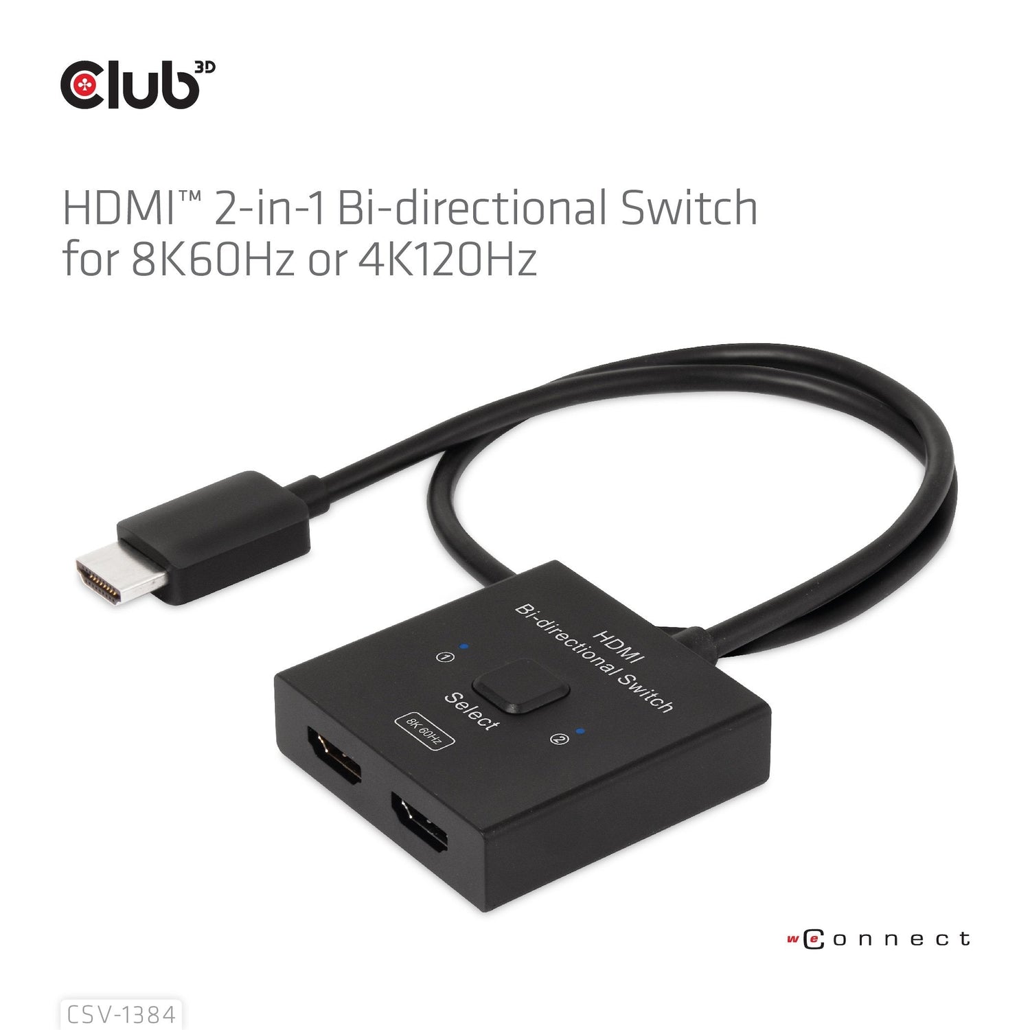 Club3d Hdmi Switch 2-In-1 Bidirektional 8k60hz 4k120hz Uhd Retail