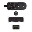 - HDMI duplicador (splitter) 1X2 (una entrada, dos salidas) con pigtail (cable hdmi) 50 cm y fuente de alimentación.