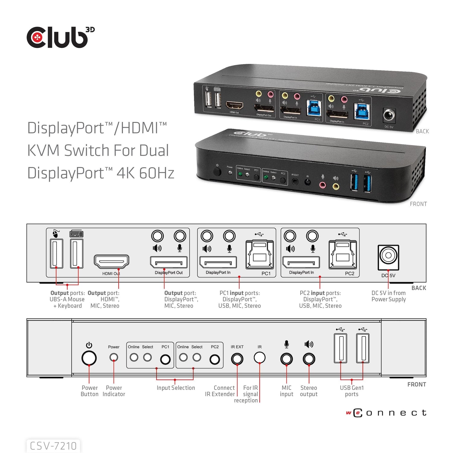 Club3d Kvm Switch 4k60hz 2x Dp > Hdmi Oder Dp/2xusb/Audio