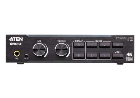 Aten Switch De Presentación True 4k 4 X 2 Con Escalador De Vídeo, Dsp Y Hdbaset-Lite