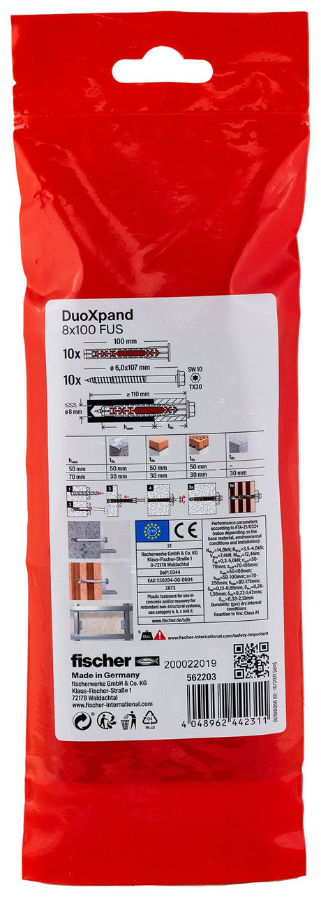 Tacos De Expansión Duoxpand Fus Ø8 X 100 Mm + Tornillos Ø6 X 107 Mm, Bolsa 10 Uds