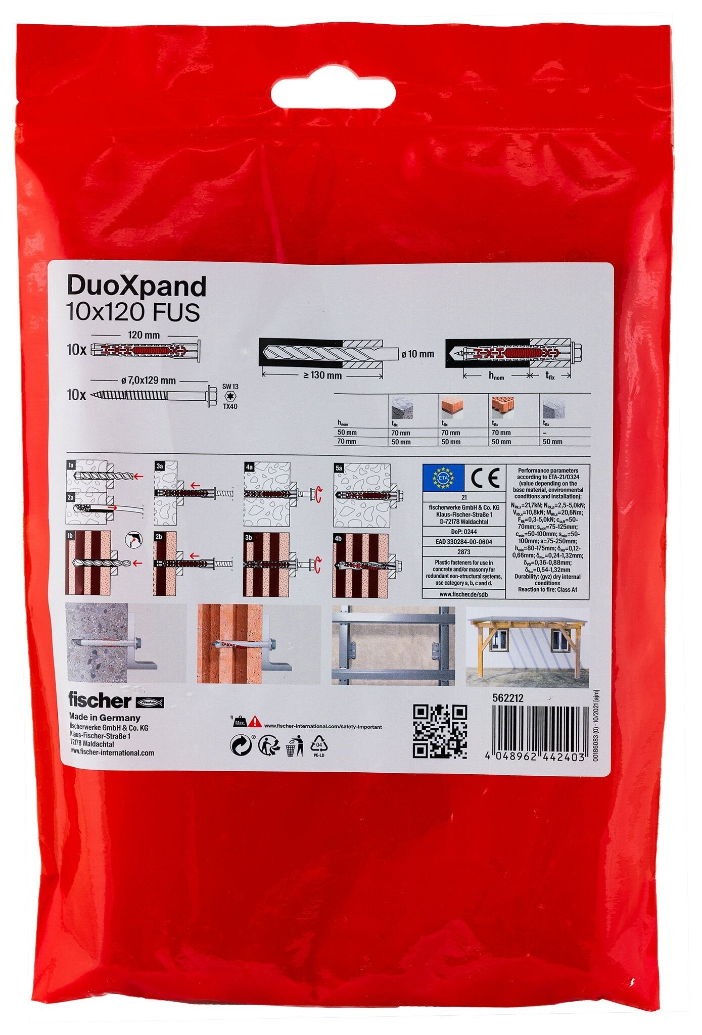 Fischer 562212. Cantidad por paquete: 10 pieza(s)