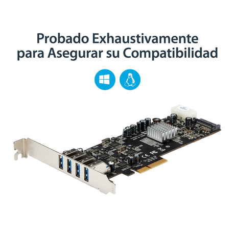 Startech Tarjeta Pci Express 4 Puertos Usb 3.0 Uasp 2 Canales De 5gbps Pexusb3s44v