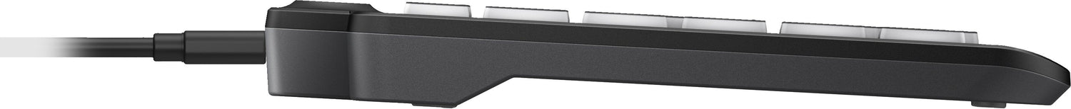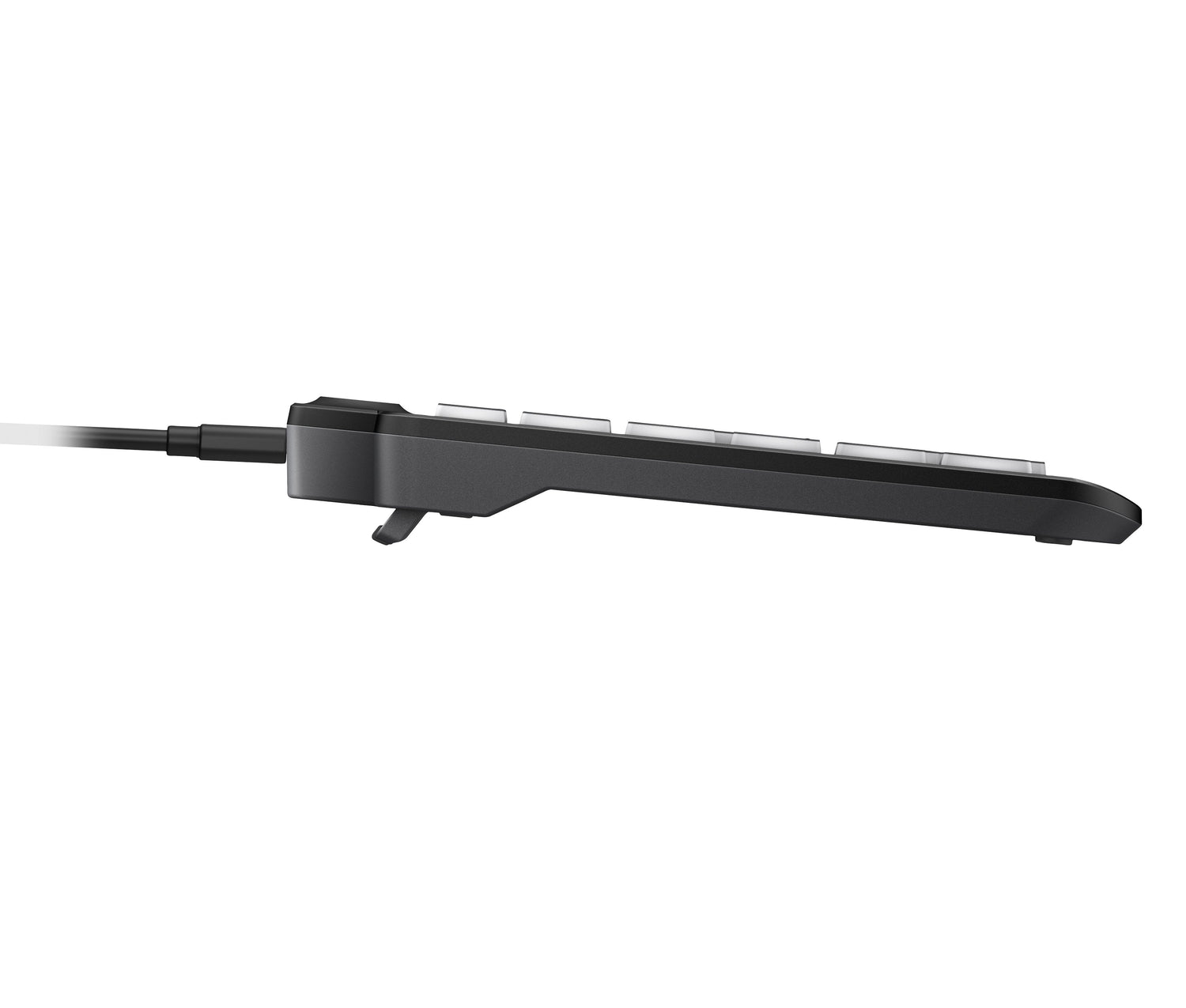 - Ajusta tu espacio de trabajo a tu gusto. Con 12 teclas programables[1], puedes crear tus propios accesos directos o automatizar combinaciones de teclas difíciles para ahorrar tiempo mientras trabajas. Además, con una inclinación de 0 a 6 grados y tres niveles ajustables de brillo LED, la comodidad está al alcance de tus manos.