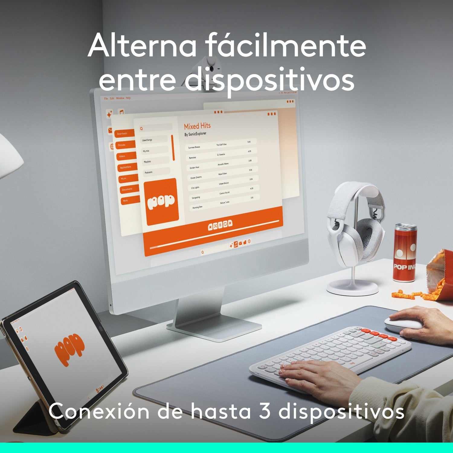 - Alterna fácilmente entre 3 dispositivos: conecta por Bluetooth hasta 3 dispositivos inalámbricos de distintos sistemas operativos (Windows, macOS, iPadOS, iOS, ChromeOS) y alterna entre ellos con solo pulsar el botón Easy-Switch