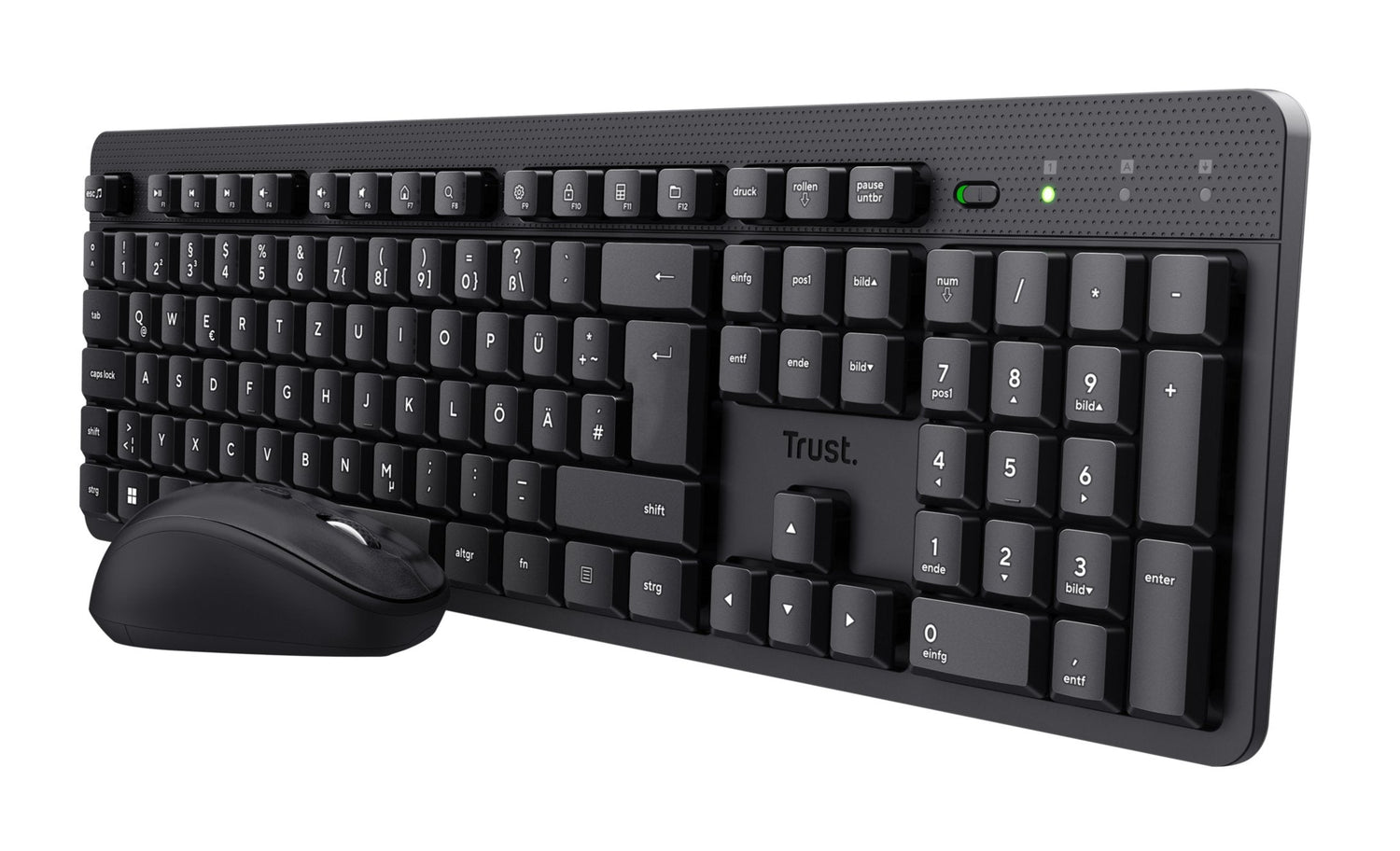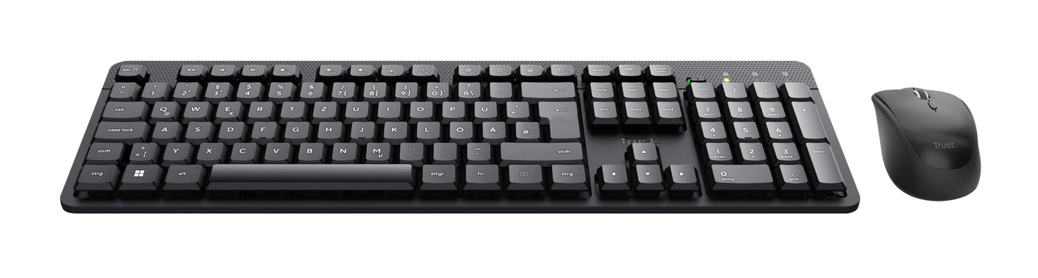 Trust TKM-360. Formato del teclado: Completo (100%), Tecnología de conectividad: Inalámbrico, Interfaz del dispositivo: RF inalámbrico, Interruptor del teclado: Interruptor de membrana, Diseño de teclado: QWERTY, Uso recomendado: Oficina. Color del producto: Negro. Ratón incluido