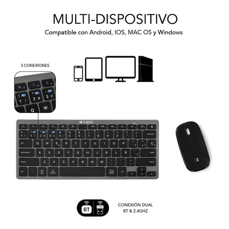 Teclado Y Ratón Inalámbrico Subblim Oco010 Combo Multidispositivo Compacto Plata