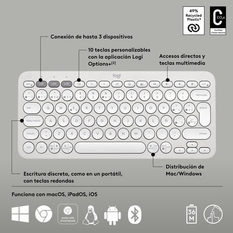 Teclado Logitech Pebble Keys 2 K380s Rf Wireless + Bluetooth Qwerty Blanco Español