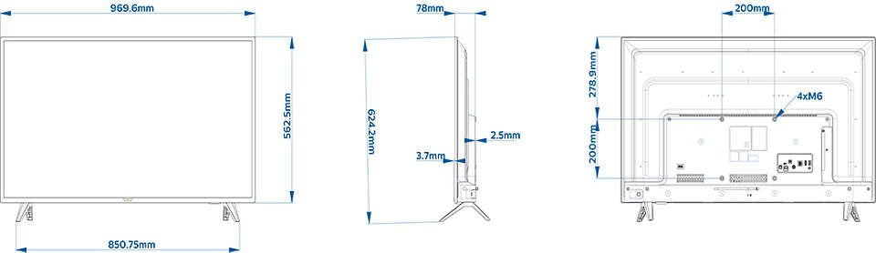 Philips 43HFL5114/12. Diagonal de la pantalla: 109,2 cm (43"), Resolución de la pantalla: 1920 x 1080 Pixeles, Tipo HD: Full HD, Tecnología de visualización: LED, Forma de la pantalla: Plana. Smart TV. Brillo de pantalla: 250 cd / m², Relación de aspecto nativa: 16:9. Formato de señal digital: DVB-C, DVB-T, DVB-T2. Wifi, Ethernet. Color del producto: Negro