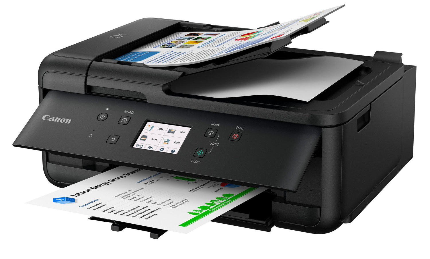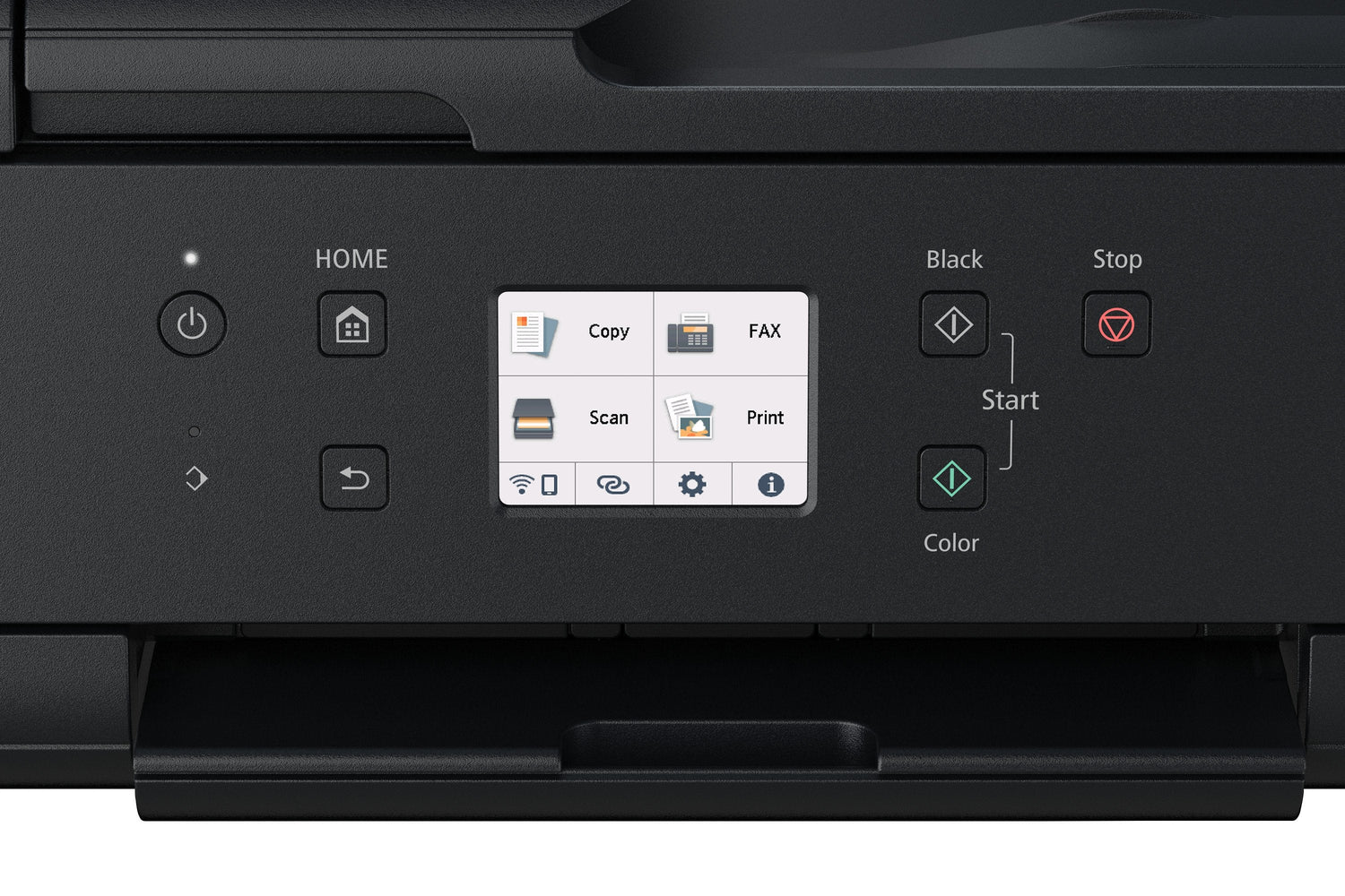 Canon PIXMA TR7650. Tecnología de impresión: Inyección de tinta, Impresión: Impresión a color, Resolución máxima: 4800 x 1200 DPI. Copiando: Copia a color. Escaneando: Escaneo a color, Resolución óptica de escáner: 1200 x 2400 DPI. Enviando por fax: Fax a color. Funciones dúplex: Copiar, Imprimir. Tamaño máximo de papel ISO A-series: A4. Wifi. Impresión directa. Color del producto: Negro
