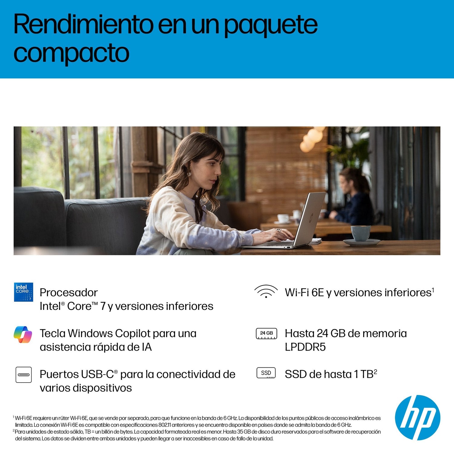 El portátil 2 en 1 HP OmniBook 5 de 14 pulgadas cuenta con una bisagra de 360 grados que se adapta a cómo quieras usarlo, dondequiera que estés. Equipado con un procesador Intel Core™ y con puertos y altavoces premium, tiene todo lo que necesitas para completar cualquier tarea.