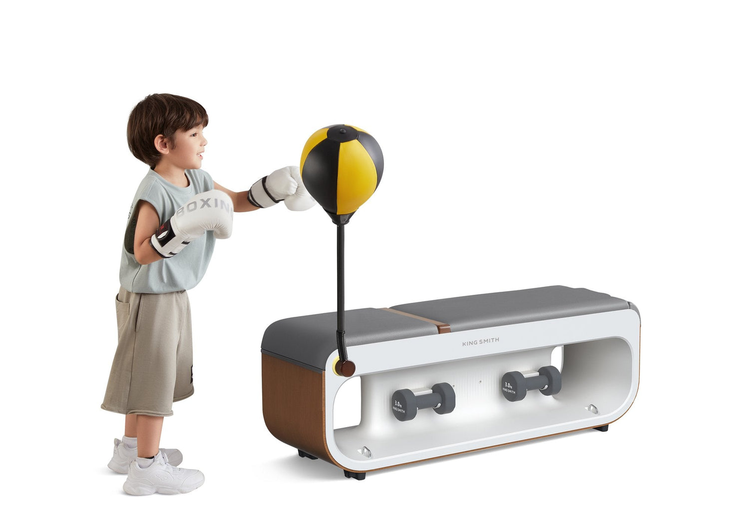 Kingsmith Banco de entrenamiento multifuncional FBB1C. Entrenamiento de grupo de músculos: Bíceps, Pecho, Forearms, Hombros, Color del producto: Gris, Madera. Ancho: 1170 mm, Profundidad: 340 mm, Altura: 415 mm. Ancho del paquete: 1236 mm, Profundidad del paquete: 380 mm, Altura del paquete: 450 mm