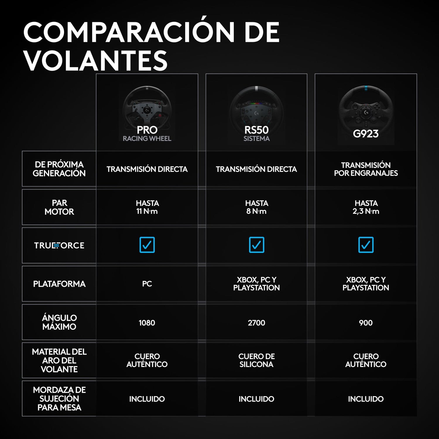 - Base RS50: Compatible con cualquier volante de simulación de carreras Logitech G RS o PRO, con 8 N⋅m de par máximo con accionamiento directo para un Force Feedback TRUEFORCE ultrarrealista