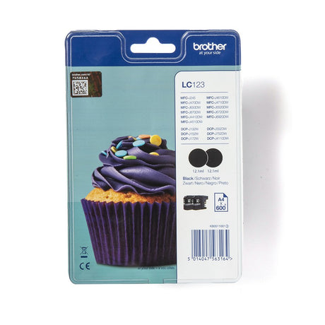 Brother Lc-123 Ink Cartridge Negro Standard Capacity 2 X 600 Pages 2-Pack Blister Without Alarm