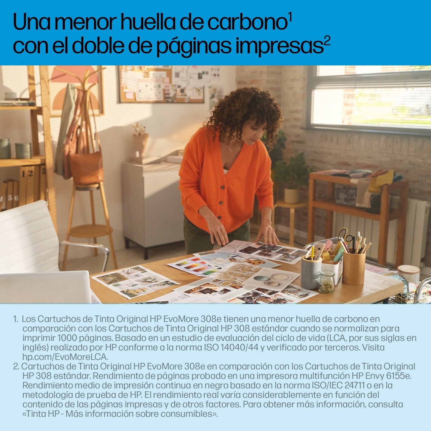 HP Cartucho de Tinta Original EvoMore 308e negra, Rendimiento estándar, Negro, Tinta a base de pigmentos, 1 pieza(s), 320 páginas, Pack individual