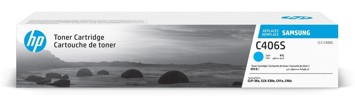 Samsung CLT-C406S. Rendimiento de impresión de tóner de color: 1000 páginas, Colores de impresión: Cian, Cantidad por paquete: 1 pieza(s)