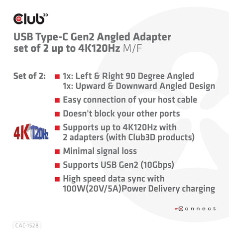 Adaptador Club3d Usb 3.2 Tipo C <> Usb 3.2 Tipo C En Ángulo M/H Retail