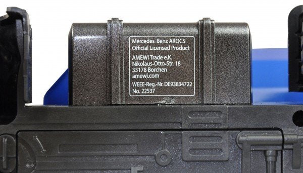Amewi Mercedes Arocs License Dump Truck. Tipo de producto: Camión basculante, Escala: 1:14, Tipo de motor: Motor eléctrico. Tecnología de batería: Níquel-metal hidruro (NiMH), Capacidad de batería: 400 mAh. Peso: 3,6 kg