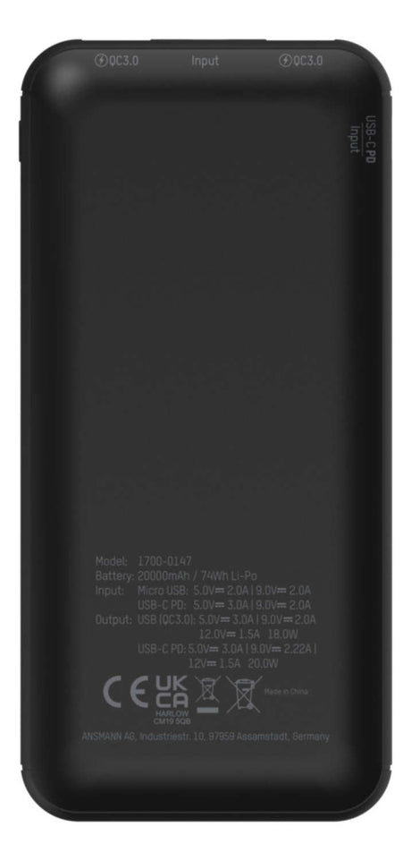 Bateria Ansmann Powerbank 20000 Mah 20w 2 Usb-A Ports, Usb-C Port