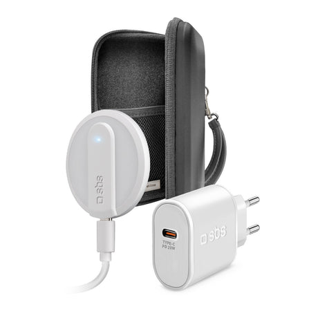 Sbs Kit De Viaje Con Cargador Inalámbrico Y Cargador Usb-C Pd 20w Blanco