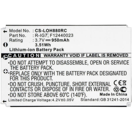 Battery For Remote Control 3.52wh Li-Ion 3.7v 950mah