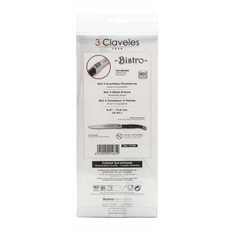 3 Claveles - Set De 4 Cuchillos Chuleteros 11.5 Cm. Gama Bistro. Ref. 01481