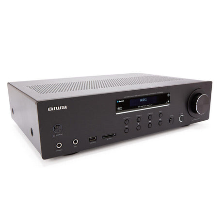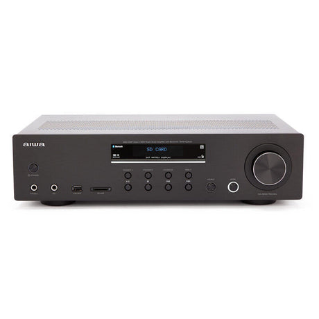 Amplificador Aiwa Amu-120bt Negro 2xcanales/Chasis Metal/2xout 60w/Bt 5.0/Usb/Sd Amu-120btbk