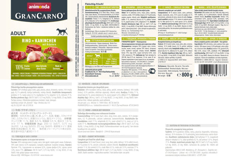 Animonda Grancarno Sabor Adulto: Ternera, Conejo Y Hierbas 800g