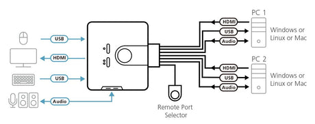 Switch Kvm Con Cable Hdmi Usb De 2 Puertos Aten Cs22hf Con Control Remoto, Fhd