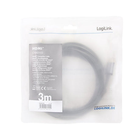 Logilink Cha0102 Cable Hdmi A/M To A/M 4k/60 Hz Alu Black/Grey 3m