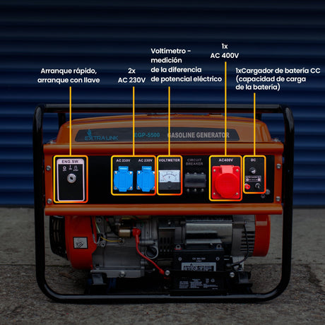 Extralink Ex.30356 Motor-Generador 5000 W 25 L Gasolina Negro, Naranja