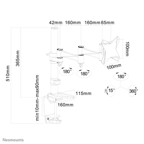 Neomounts Soporte Mesa 600x400mm 40kg 37-70'' Giratorio Höv Negro