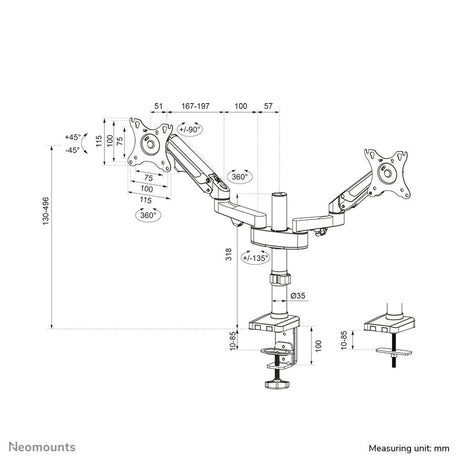 Neomounts Soporte De Escritorio Para 2 Monitores 10-32" Negro