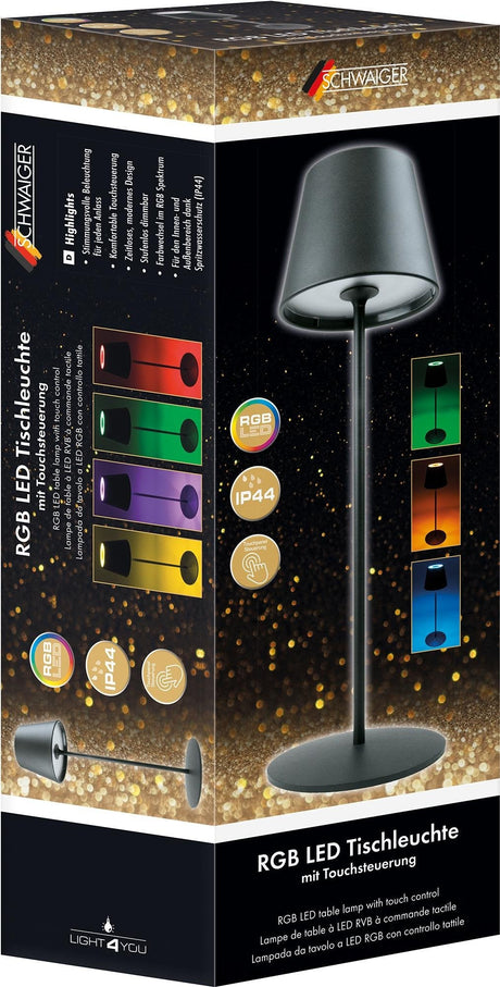 Schwaiger Lámpara De Mesa Led Akku 200lm Rgb 380mm Negro
