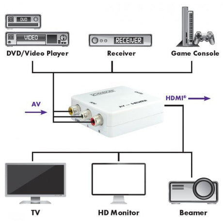 Schwaiger Hdmrca01 513 Conversor De Vídeo Con Escalador 1920 X 1080 Pixeles Av A Hdmi