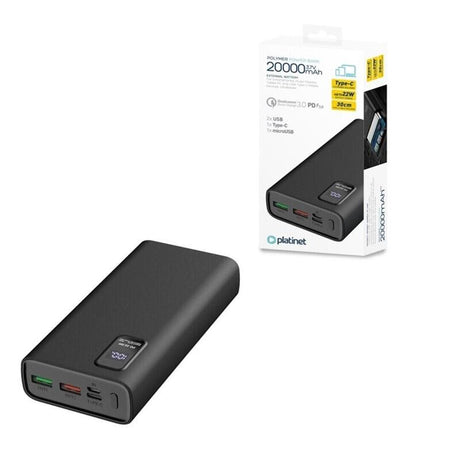 Platinet Power Bank 20000mah + 20w Pd Cargador + Cable 1m Negro
