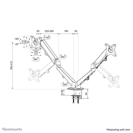 Soporte De Escritorio De Movimiento Completo Para 2 Pantallas De 17-27" 7kg Ds70-700bl2 Neomounts