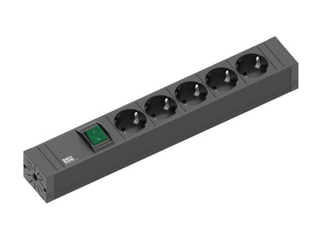 Bachmann Regleta De Enchufes De 19 "Alu 1u, 8 Vías 35 °, Negra, 2,0 M, Con Interruptor